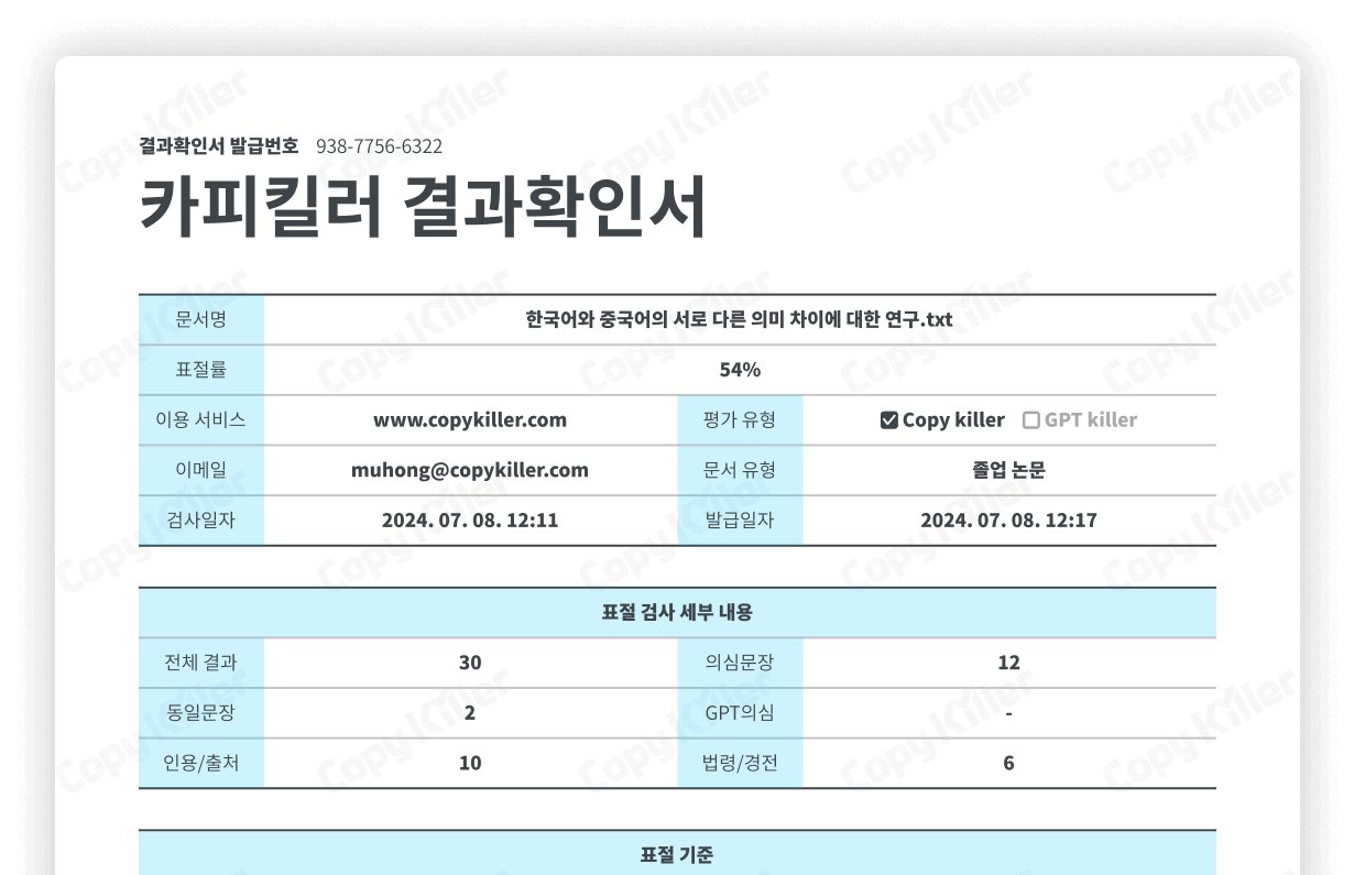 표절 여부를 증명할수 있는 국내 유일 표절검사 서비스입니다.
